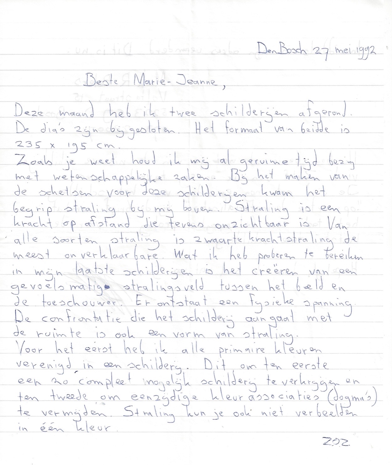 Bovenstaande afbeeldingen: Brief van Mark Robert Peters aan Marie-Jeanne Anelm betreffende expositie.