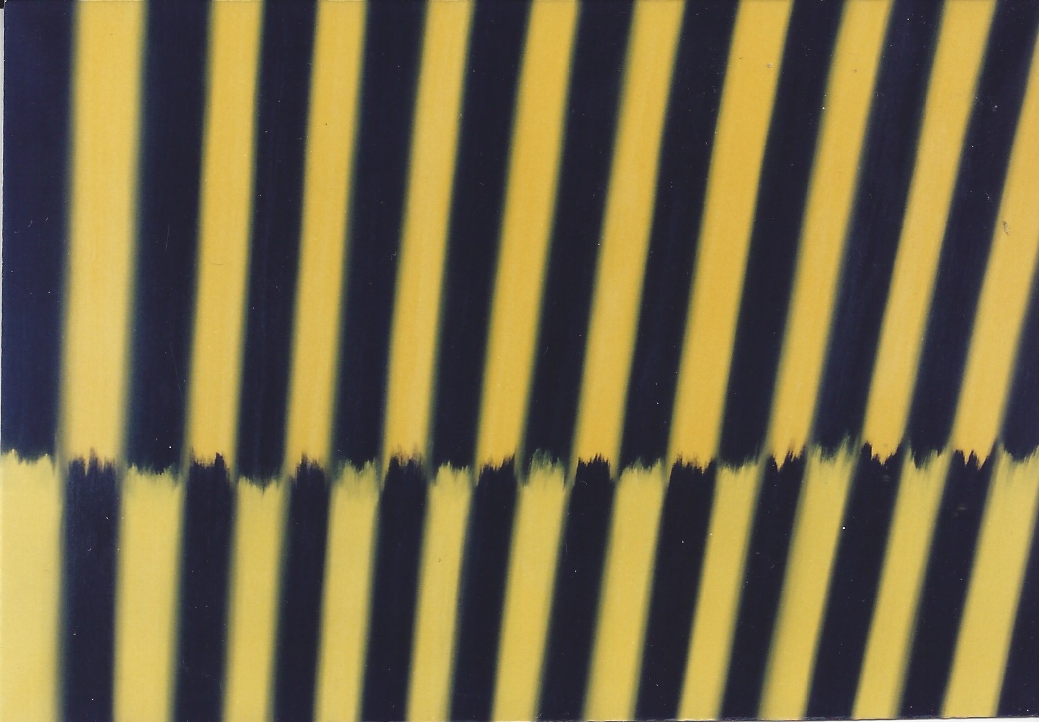 Door de diffuse kontaktranden van die kleurenbanen ontstaat er voor het oog een soort trilling of beweging. Dit is primair een visuele ervaring. Omdat het niet meteen duidelijk is waardoor die trilling ontstaat, nodigt dit uit, in tweede instantie, gericht en bedachtzaam te kijken. De mentale ervaring volgt derhalve op de visuele ervaring. Tevens ontzeg ik de kijker om via een titel het beeld direkt te gaan interpreteren.