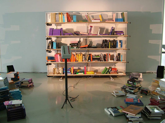 The book, as a source of knowledge, transforms into an object through which the composition can be altered. What does this mean for the book? What does this mean for the arrangement of the bookcase?