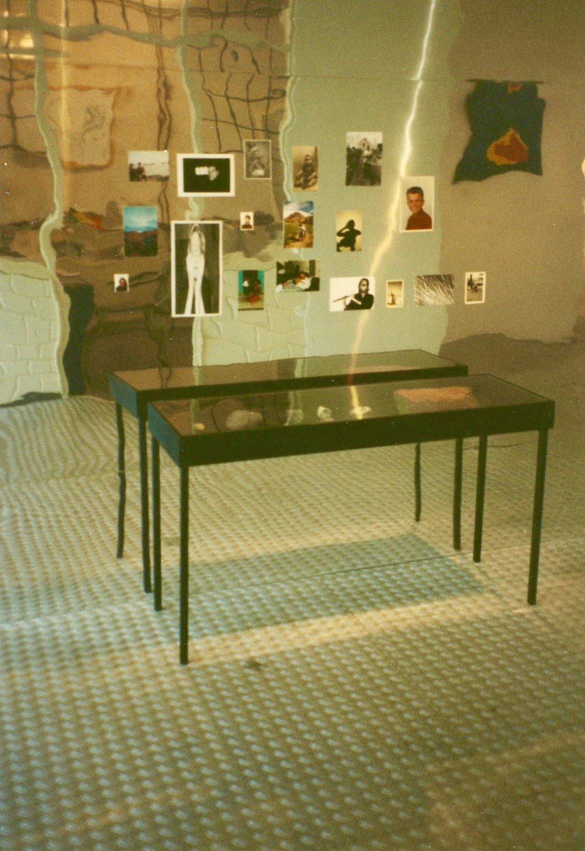 De foto's zijn van de personen die de stenen in de vitrine geleverd hebben, de ene keer zijn ze herkenbaar dan weer helemaal niet, hier en daar is er gekozen voor een foto uit de kindertijd. Het zijn bevroren momenten uit een proces van verandering, het beeld kan gelezen worden, het verteld een verhaal over de persoon; de analyse of gelijkenis is niet van belang.
